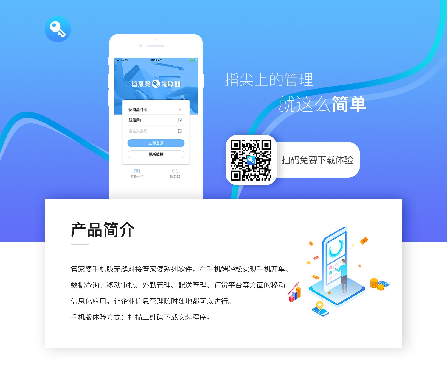 管家婆手機版無縫對接管家婆系列軟件,在手機端輕松實現手機開單、數據查詢、移動審批、外勤管理等多方面的移動信息化應用。讓企業信息管理隨時隨地都可以進行。