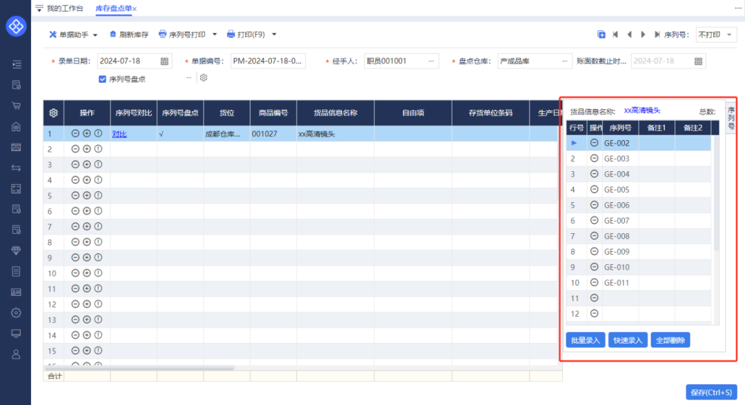 第二步:錄入庫(kù)存中實(shí)際的序列號(hào)。