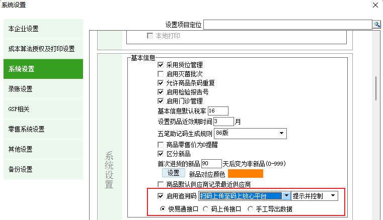 啟用追溯碼相關設置: