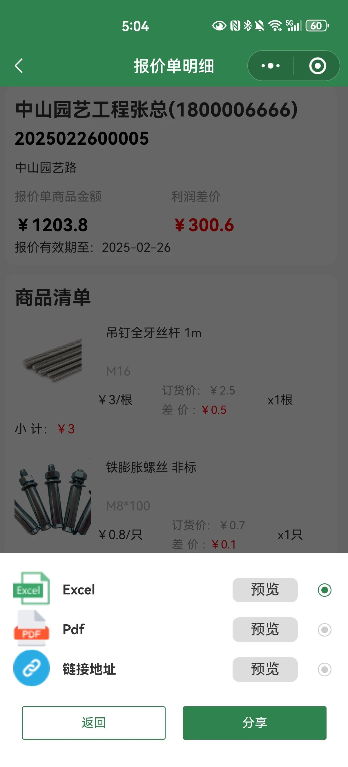 預訂單模式快捷生成圖文報價單,自動計算利潤,一鍵分享轉發,1分鐘不到即可完成報價