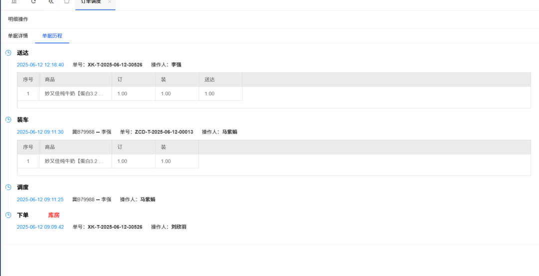 實現"訂單-倉儲-物流-簽收"全流程數字化追蹤。通過ERP端自動抓取訂單信息,簡為快消業務端+配送端完成揀貨及配送,全鏈路可視化管控。