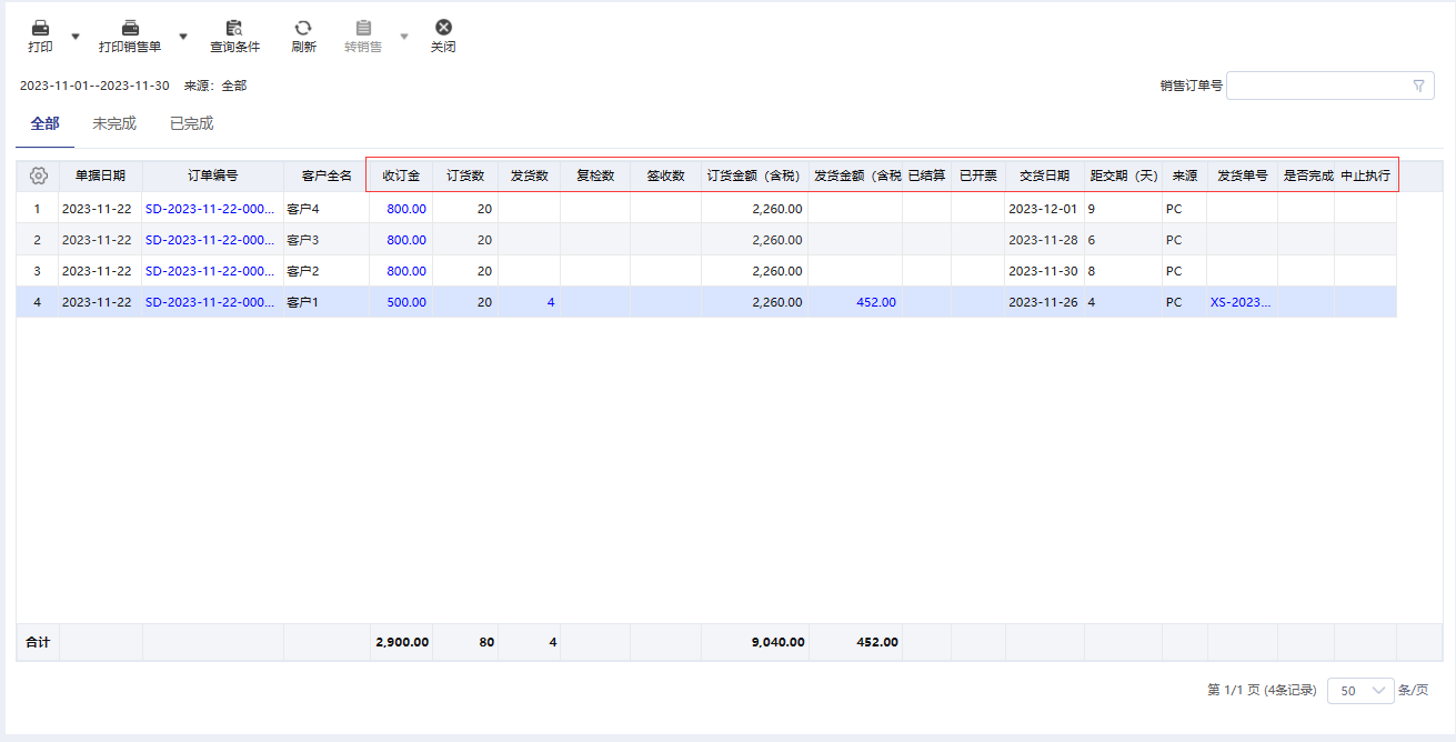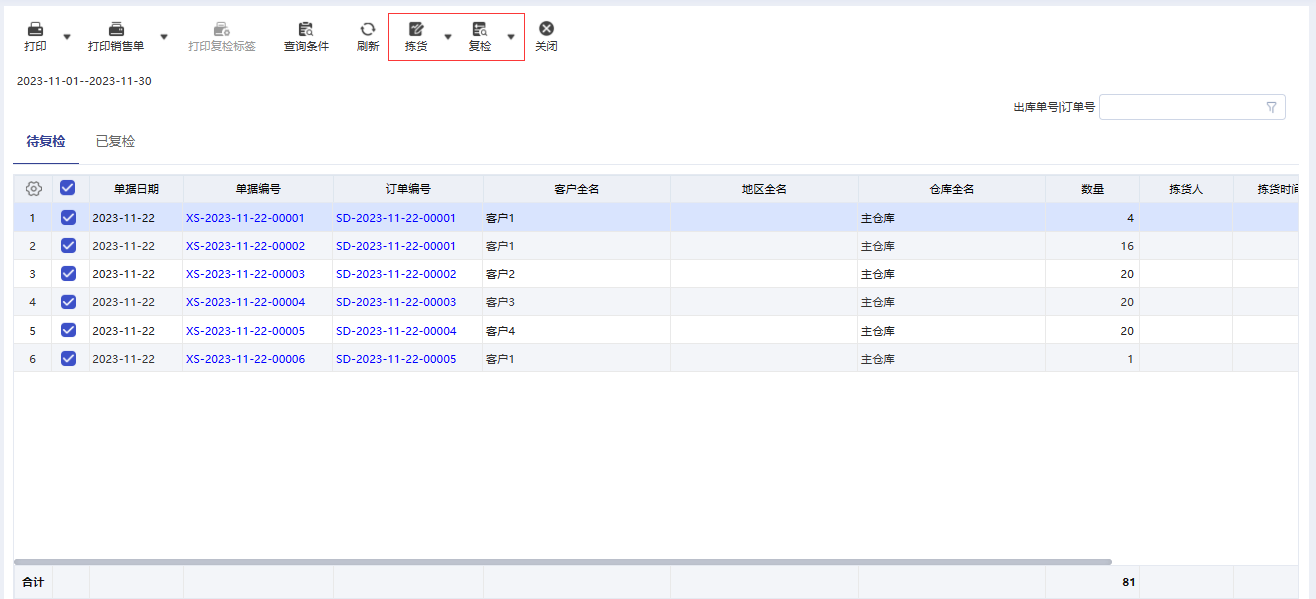 通過銷售訂單工作臺,業務人員可實時全程跟蹤客戶訂單的發貨/復檢/簽收數量及結算、開票情況,如圖1所示。