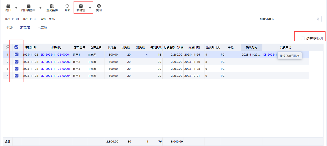 同時,也可以批量處理一切來源訂單,在轉單的同時,核準庫存是否足夠,銷售價格是否符合公司要求。在提升工作效率的同時有效避免低價銷售。如圖2、圖3、圖4所示。